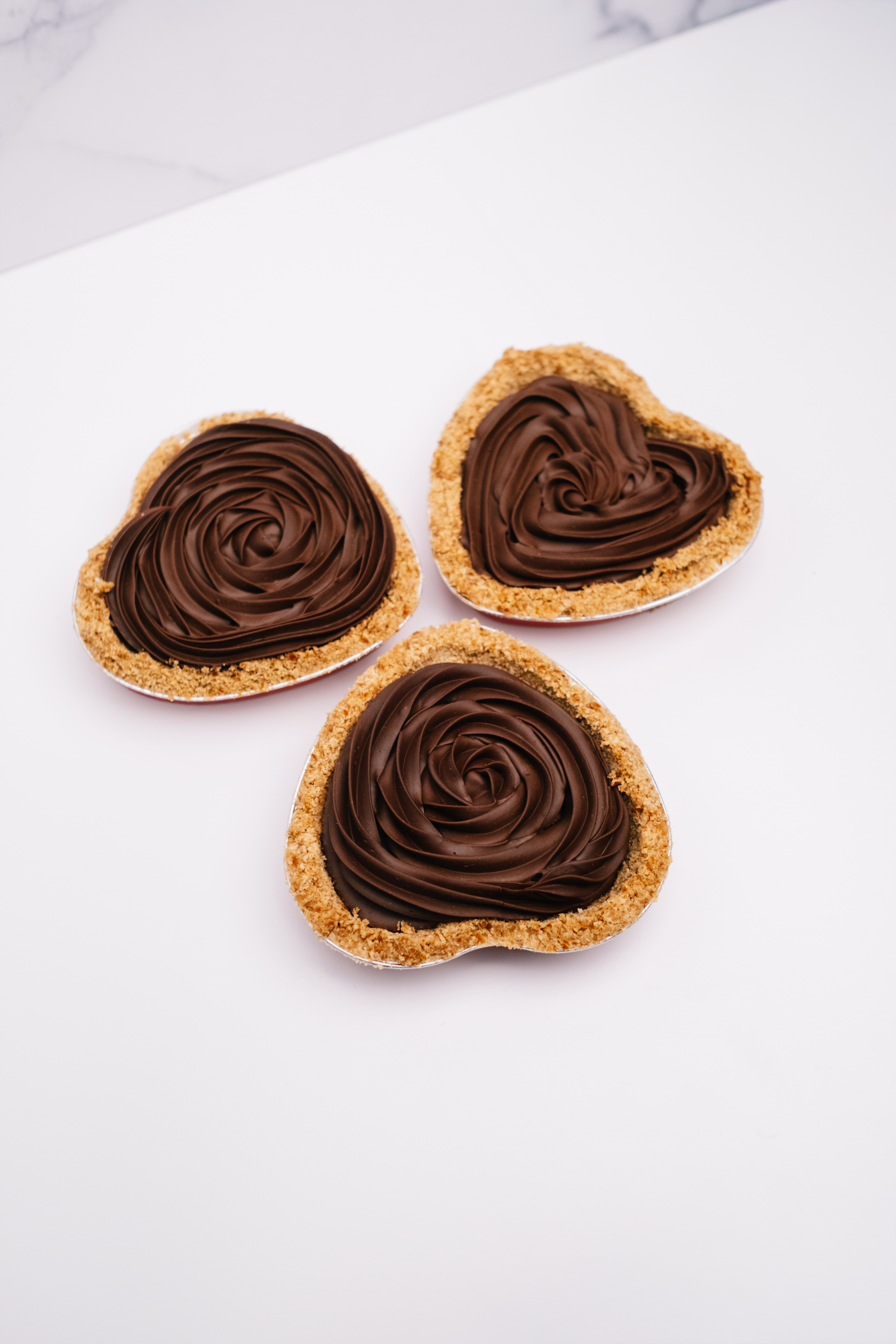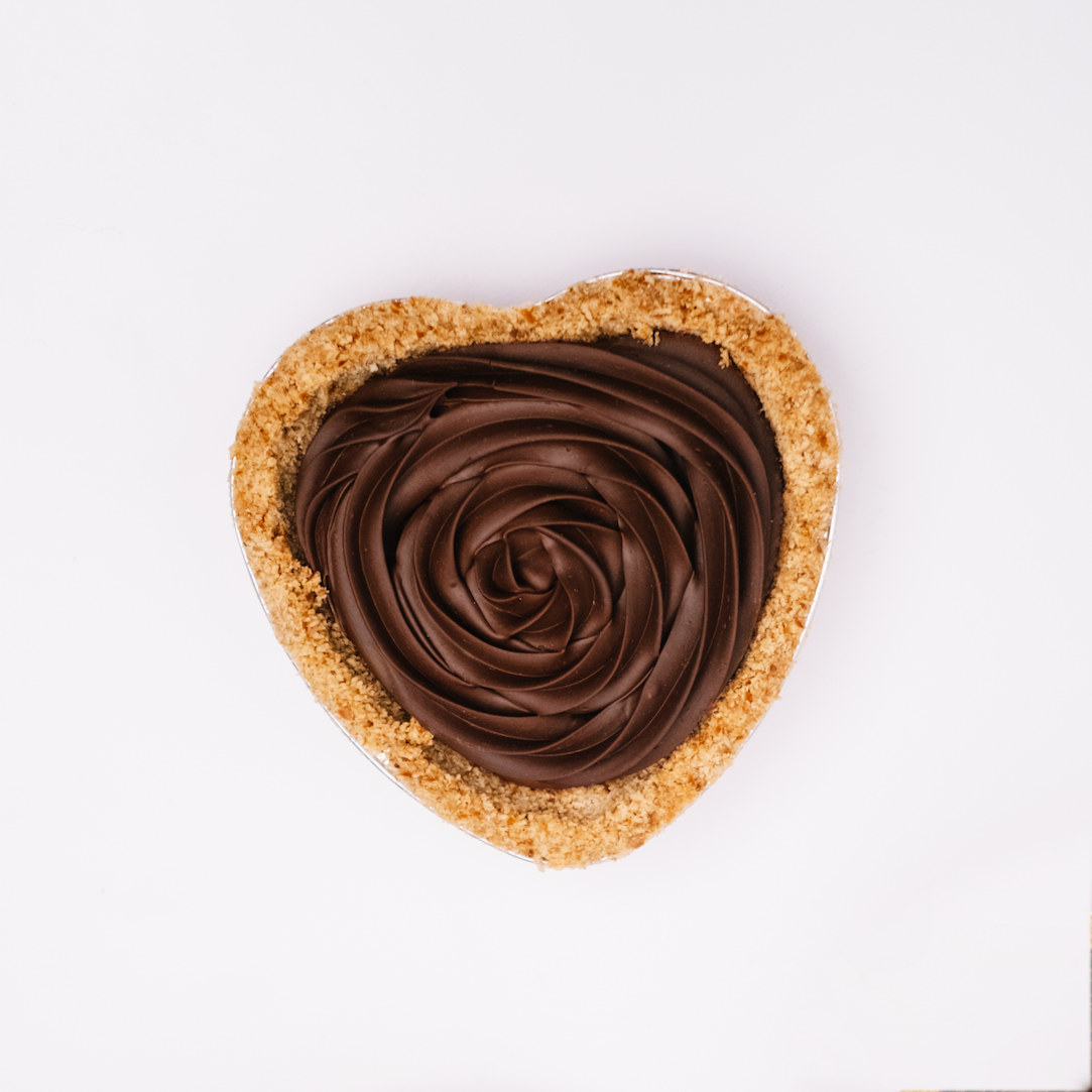 Silky-sweet chocolate is piped onto 6" mini heart shaped salty pretzel crust and topped with a chocolate rosette. This pie is a chocolate dream for the chocolate dreamer, while sure to please your valentine!